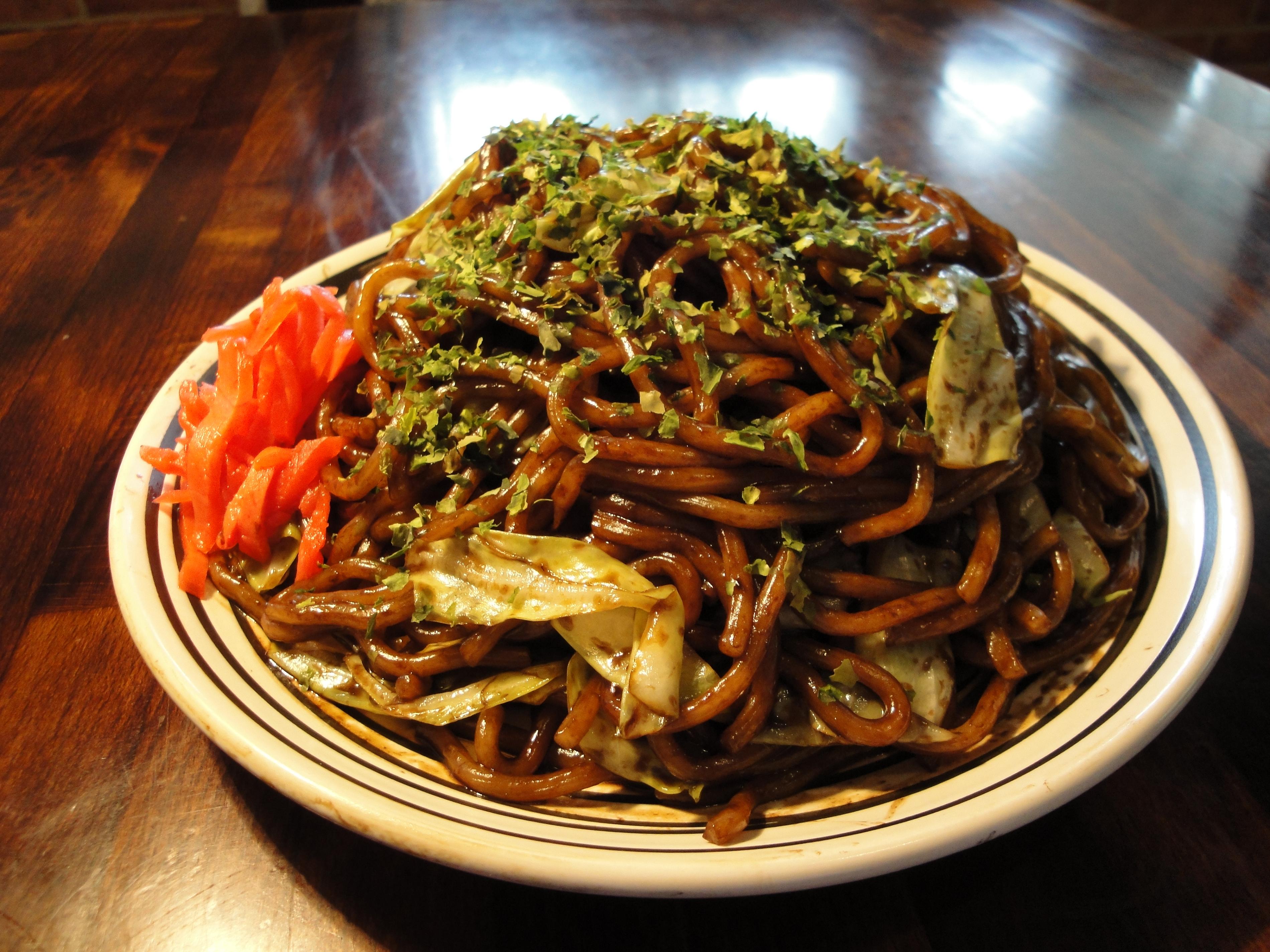 ・青のりと紅生姜がのった昔ながらのソース焼そば。