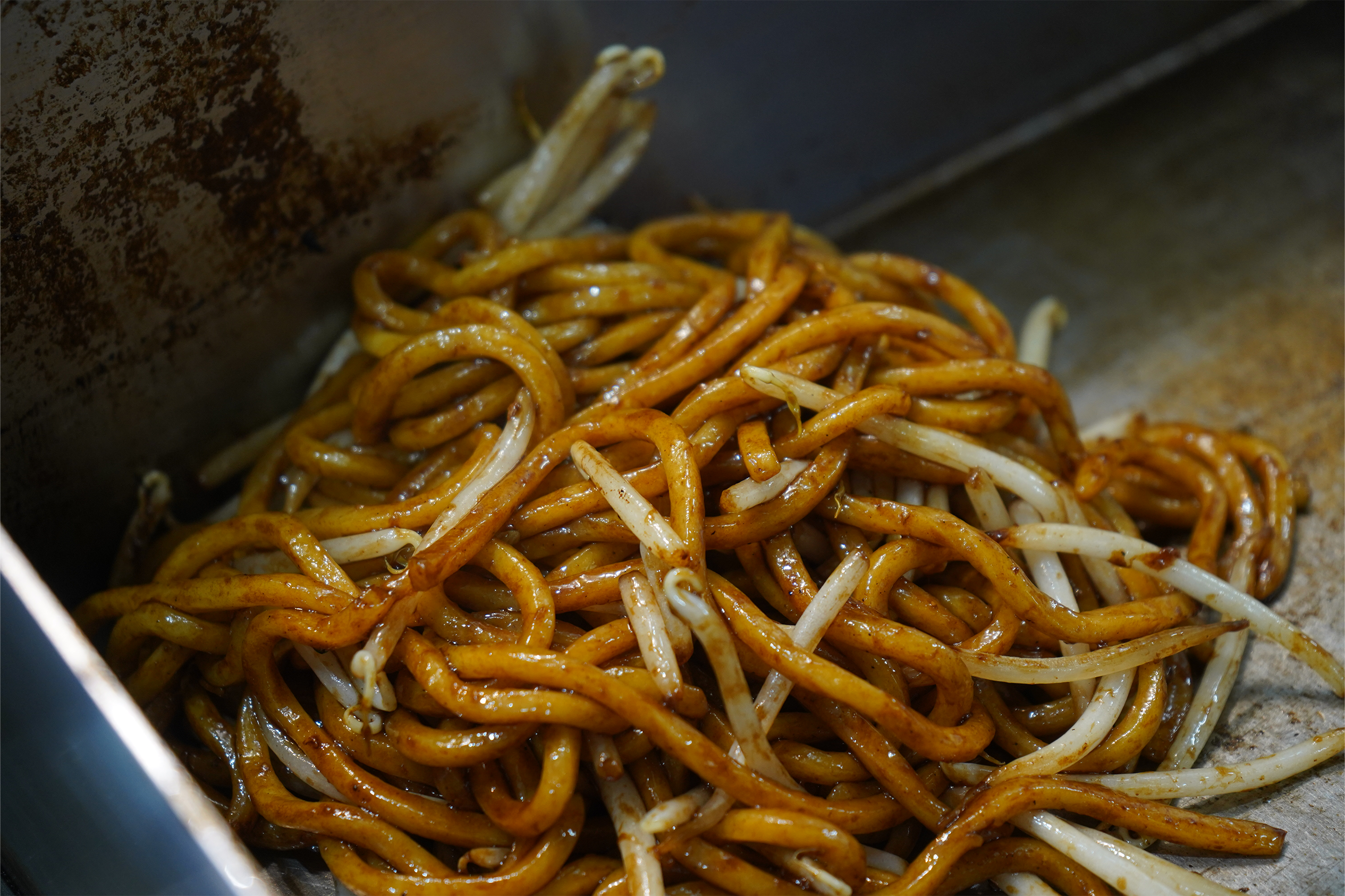 ・通常の約3倍のもある太い麺と、うまみたっぷり濃厚ソース、豚肉とモヤシだけのシンプルな具で構成されているのが特徴です。