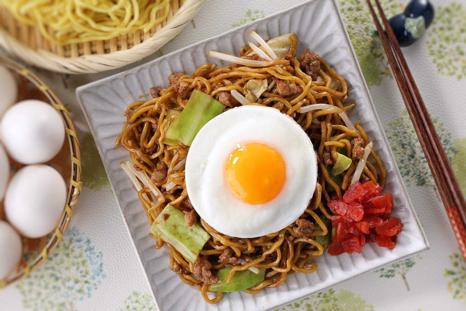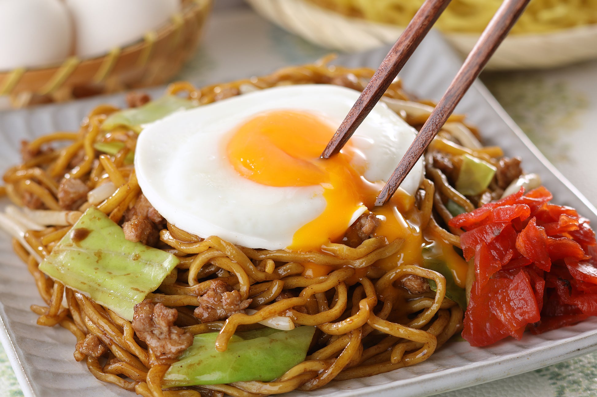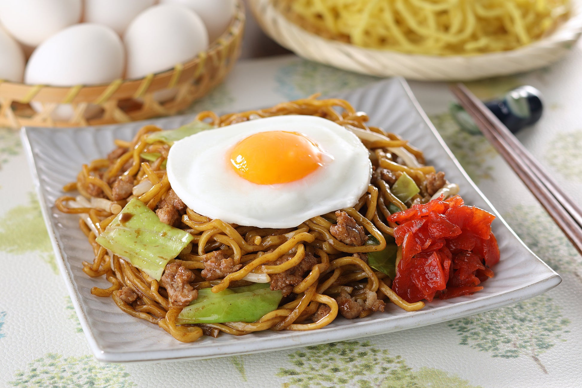 雪国「横手」で長らく愛されてきたご当地グルメ。 ウスターソースと各店オリジナルの出汁がつくり出す味わいと横手やきそばの代名詞ともいえる「目玉焼き」と「福神漬け」。 太く真っ直ぐな麺に半熟の黄身を絡めて召し上がれ!
